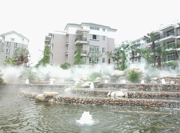 物,可實現(xiàn)人造幽深庭院、寓所園林、森林公園等仙境,同時,霧中含有大量負(fù)離子,能增加空氣含氧量,極大地改善人們居住和休閑的環(huán)境。