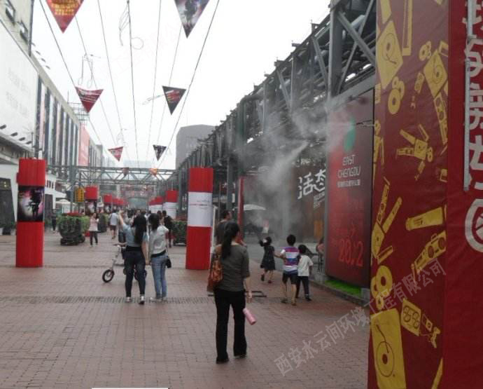 在這些室外的大環(huán)境里空調(diào)無(wú)法使用,人們就必須忍耐無(wú)所不在的酷熱。 現(xiàn)在有了噴霧降溫系統(tǒng)有圖,就可以局部地控制大環(huán)境的溫度。噴霧降溫系統(tǒng)散發(fā)到空氣中的水微粒,在氣化的過(guò)程中要吸收大量周圍環(huán)境中的熱量,從而降低周圍環(huán)境的溫度,是防暑降溫的有效手段。