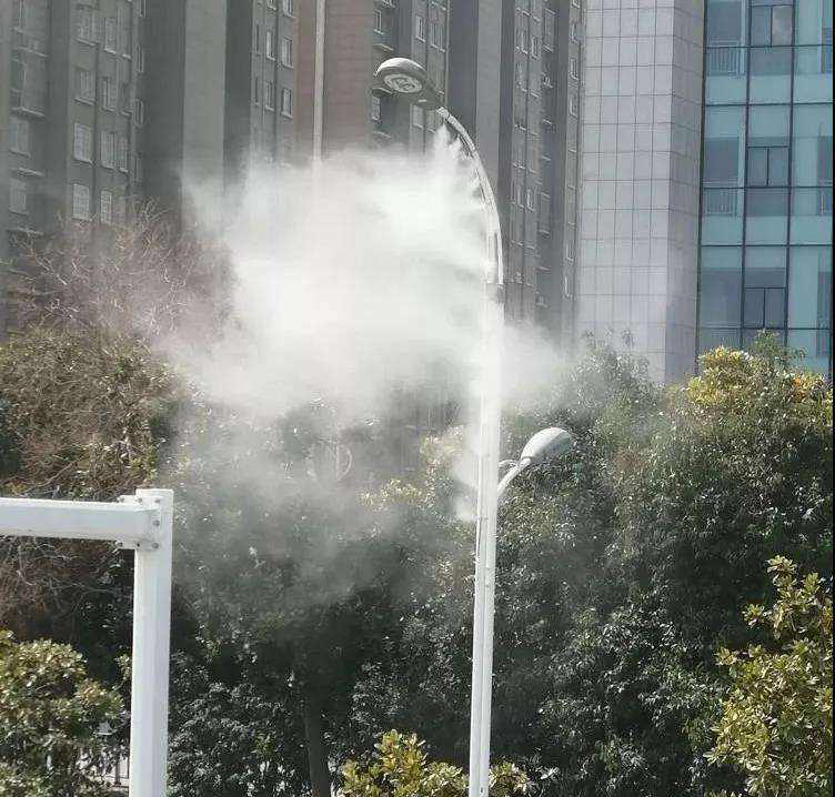 1、水霧霧粒直徑小,在1-15微米,蒸發(fā)迅速,不易形成積水,噴頭采用防滴漏噴頭不影響行人。